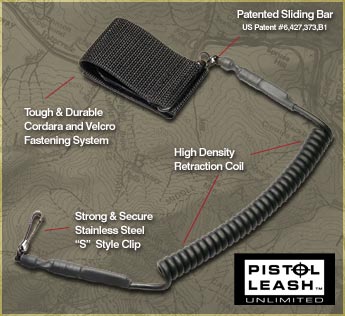The PISTOL LEASH™ was designed upon learning of a Federal agent losing his sidearm on a mission in South America, it is now available to the general public.
